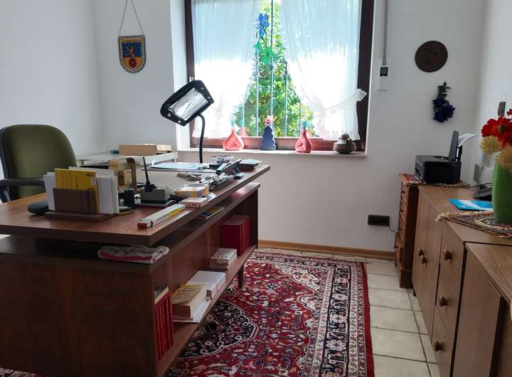 Das Herzstück des Hauses bildet das helle Wohnzimmer mit seinen zwei großen Fensterfronten, die einen herrlichen Blick in den gepflegten Garten eröffnen. Hier lädt ein stilvoller Kachelofen an kühleren Tagen zu behaglichen Stunden ein. Vom Schlafzimmer aus gelangen Sie direkt auf die sonnige Terrasse, die sich ideal für entspannte Momente im Freien eignet. Auch ein Büro bietet Raum für konzentriertes Arbeiten oder kreative Projekte. Die helle Küche bietet Platz für kulinarische Ideen und lädt zum gemeinsamen Kochen ein. Das separate Esszimmer bildet den idealen Rahmen für gesellige Runden mit Familie und Freunden.