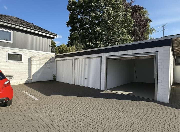 Die Ausstattung der Immobilie umfasst zudem Garagen, Stellplätze und einen Kellerbereich mit Lager- und Kühlmöglichkeiten. Insgesamt stehen drei Garagen, vier Stellplätze sowie drei Kundenparkplätze zur Verfügung.