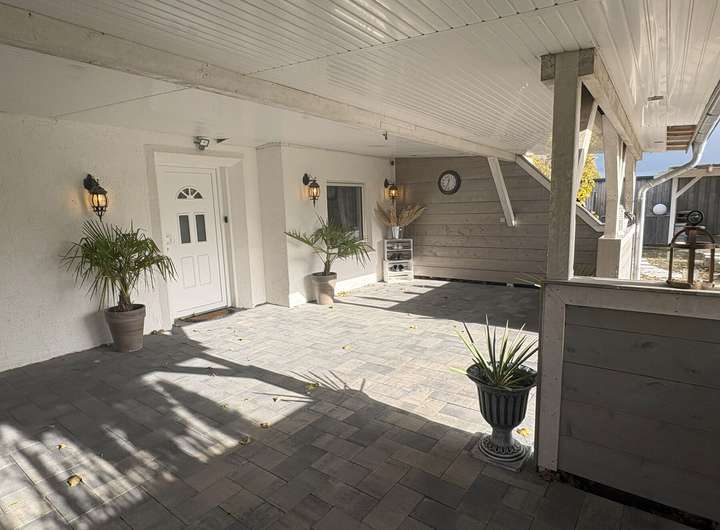 Die Immobilie verfügt über eine überdachte Terrasse (Aluterrassenüberdachung von ca. 2023) sowie einen separaten Poolbereich, der alternativ als zusätzliche Terrasse genutzt werden kann. Die Außenanlage wurde seit 2016 fortlaufend erneuert, ebenso wurde die Auffahrt bereits vorbereitet und mit neuem Untergrund versehen. Die finale Pflasterung kann vom neuen Eigentümer nach eigenen Vorstellungen gestaltet werden. Auch der überdachte Eingangsbereich ist mit Strom- und Lichtanschluss ausgestattet und rundet das stimmige Gesamtbild ab.