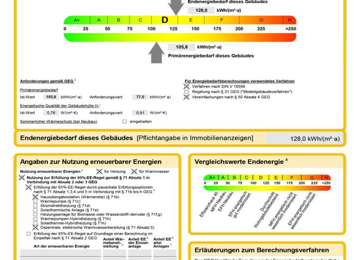 | Energieverbrauchskennwert | 128,0 kWh/(m²*a) |