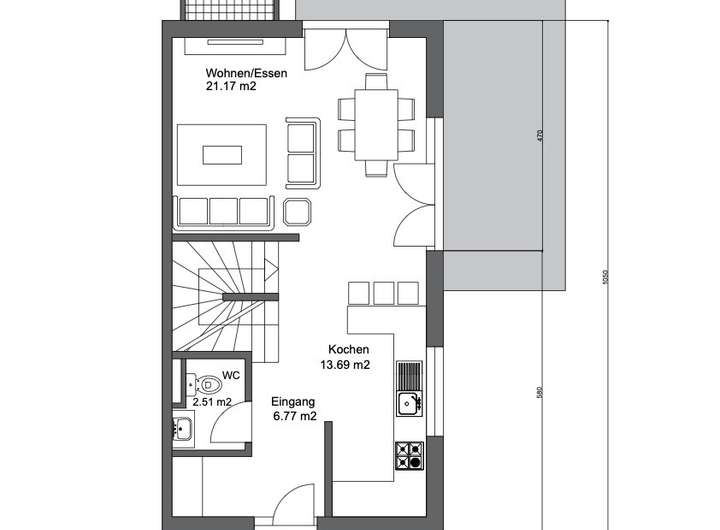 Vollwertig als Wohnraum ausgebautes Untergeschoss