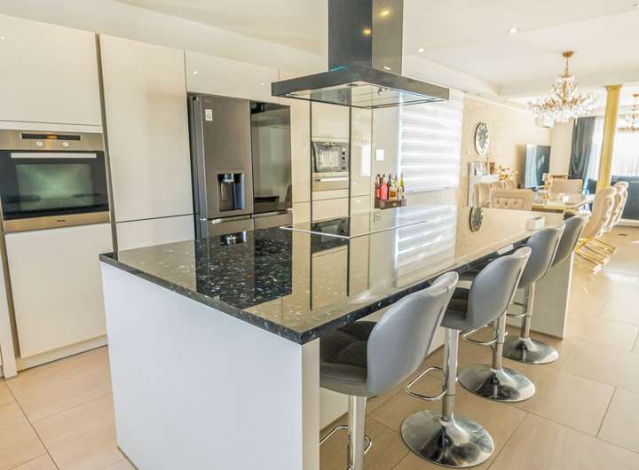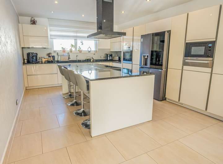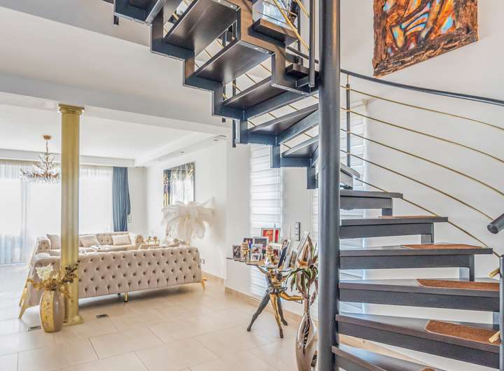 Das im Jahr 2013 massiv errichtete Gebäude (30 cm Poroton-Ziegel plus 10 cm Wärmedämmverbundsystem) verfügt über eine Gesamtwohnfläche von rund 320 m², davon ca. 245 m² Hauptwohnung und ca. 75 m² Einliegerwohnung. Insgesamt bietet das Haus 7 Zimmer sowie ein zusätzliches Gästezimmer im Untergeschoss.