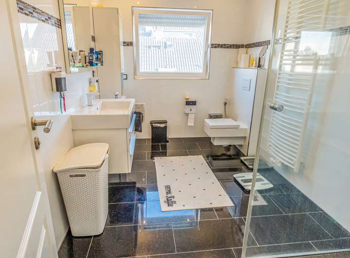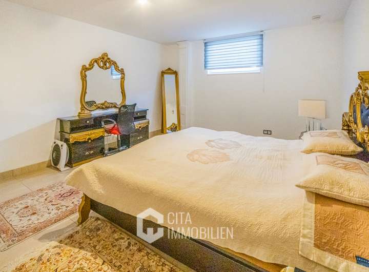 Das Kellergeschoss ist von der Einliegerwohnung getrennt und bietet ein Gästezimmer, ein weiteres Badezimmer sowie mehrere Kellerräume mit vielfältigen Nutzungsmöglichkeiten – beispielsweise als Hobbyraum, Fitnessbereich oder Lagerfläche.