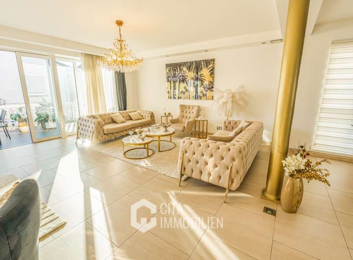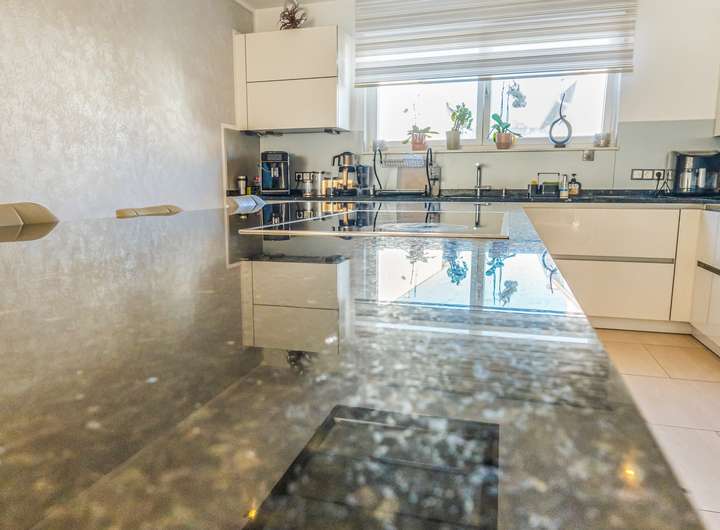 Im Erdgeschoss der Hauptwohnung erwartet Sie ein großzügiger Wohn- und Essbereich mit offener Küche, Zugang zur Terrasse, ein Gäste-WC sowie eine Garderobe.