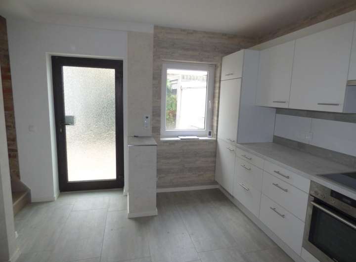 Terrasse, Vollbad, Einbauküche, Kamin, Laminat, Fliesen