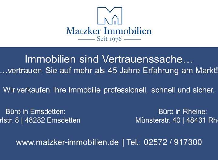 Bitte haben Sie Verständnis, dass wir aufgrund der Nachweispflicht gegenüber dem Eigentümer und gesetzlicher Bestimmungen (Geldwäschegesetz) nur Anfragen mit vollständiger Nennung Ihres Namens, Ihrer Anschrift und einer Rückrufmöglichkeit bearbeiten können. Nachdem Sie uns Ihre Daten bekannt gegeben haben, übersenden wir Ihnen gerne ein Exposé oder vereinbaren mit Ihnen einen Besichtigungstermin.