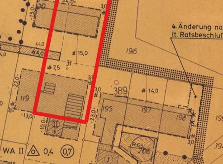 Das Grundstück liegt in einem Gebiet mit gültigem Bebauungsplan und bietet zwei großzügige Baufelder mit jeweils Grundflächen von ca. 300 m². Der Bebauungsplan gibt eine 2-geschossige Bauweise vor mit einer GRZ von 0,4 und einer GFZ von 0,7. Eines der Baufelder liegt aktuell in einem dicht bewachsenen Bereich des Grundstücks.