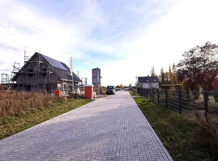 Die neu angelegten Erschließungsstraßen „Freie Scholle“ / Jacob-Hensel-Weg" (Zufahrt in Bereich Hauptstraße 4 und 6) ermöglichen eine komfortable Anfahrt der jeweiligen Grundstücke und Anbindung an die hiervorragende Infrastruktur von Schwante/Oberkrämer.