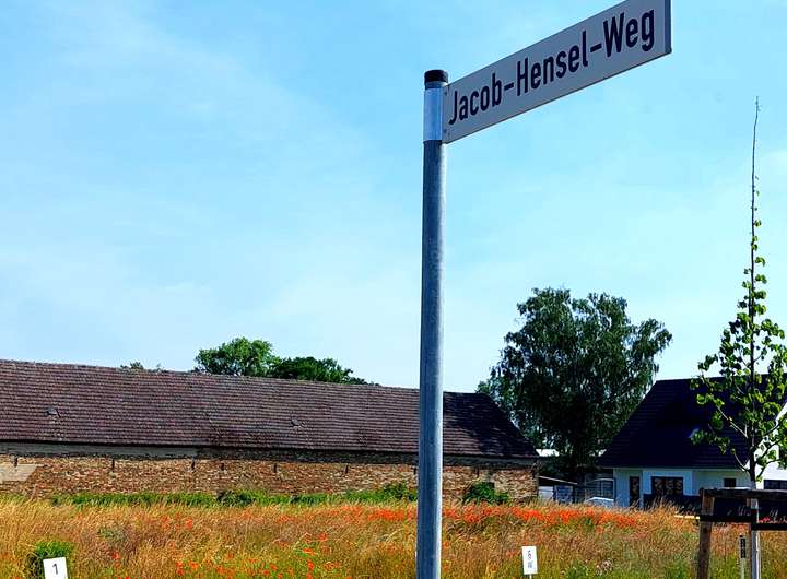 Die Erschließungsarbeiten sind fertiggestellt. und die beiden neuen öffentlichen Straßen "Freie Scholle" und "Jacob-Hensel-Weg" an die Gemeinde übergeben.