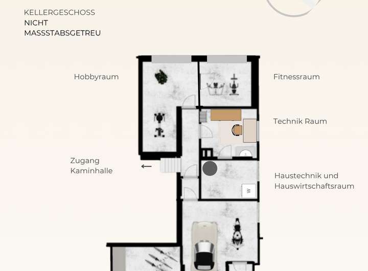Tiefgarage mit elektrischem Tor und direkter Zugang, Wohn- und Nutzbereich, Weinkeller sowie Werkstatt