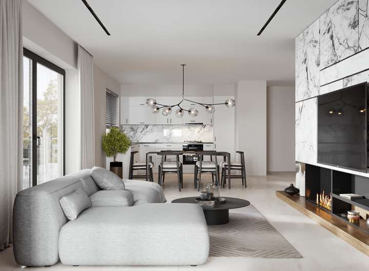 Der Tag beginnt im Osten, wo die Sonne über den Frühstückstisch streicht, zieht mittags hell durch den Süden und verabschiedet sich abends im goldenen Westen. Die Räume folgen diesem Rhythmus, atmen ihn, tragen das Licht in jede Faser. Kein Winkel bleibt unberührt, kein Moment ohne Wirkung. Im Inneren herrscht eine stille, selbstverständliche Eleganz. Kein Prunk, sondern Präzision. Jedes Detail spricht von Sorgfalt, von Sinn für Proportion und Material. Und doch ist es die Terrasse, die alles überstrahlt: ein stiller Höhepunkt, ein Freiluftsalon über der Stadt, in dem die Zeit ihr eigenes Tempo findet. Vielleicht erklingt dort leise Musik, vielleicht nur das Rascheln des Windes. Es ist ein Ort für jene, die das Leben nicht jagen, sondern verstehen . Für Menschen, die Schönheit im Gleichmaß mit Sinn zu schätzen wissen.