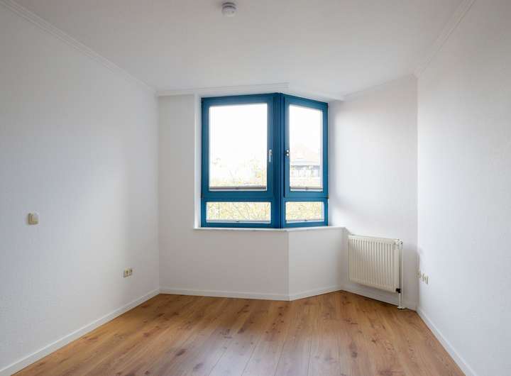 Des Weiteren stehen das Schlafzimmer sowie ein weiterer Raum zur Verfügung, der als Kinderzimmer oder Büro genutzt werden kann. In allen Zimmern ist hellbrauner Laminat verlegt worden. Zusätzlich gibt es in dieser Etage einen weiteren Abstellraum für weitere Lagermöglichkeiten.