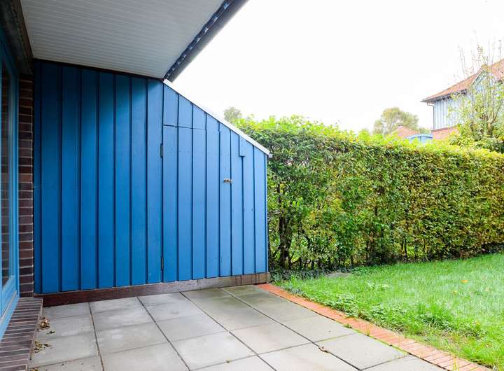 Hinter dem Haus befindet sich der Garten in den man durch das Wohnzimmer gelangt. Die dort befindliche Terrasse lädt in sommerlicher Atmosphäre zum verweilen oder grillen ein. Zusätzlich befindet sich im Garten auch noch ein Geräteschuppen der zusätzlichen Stauraum bietet.
