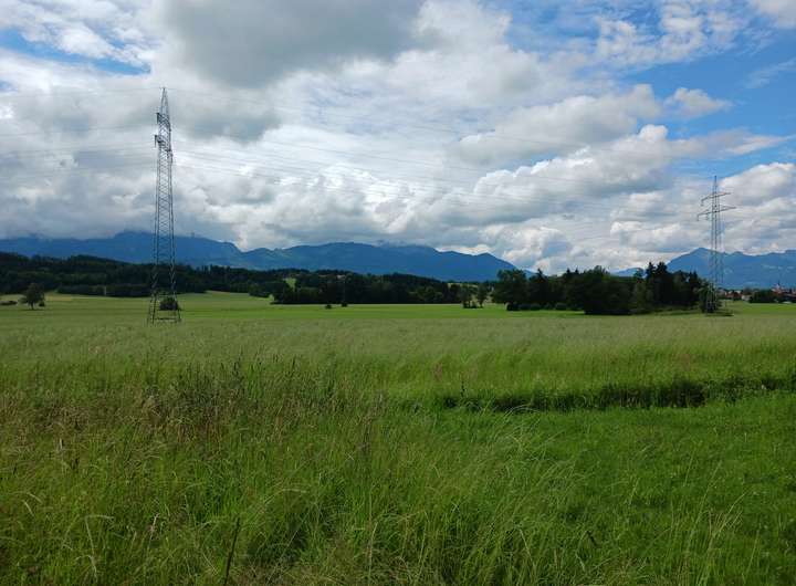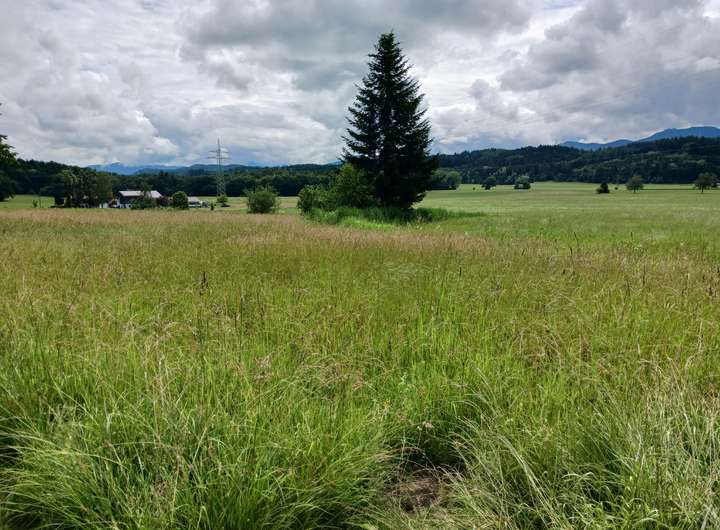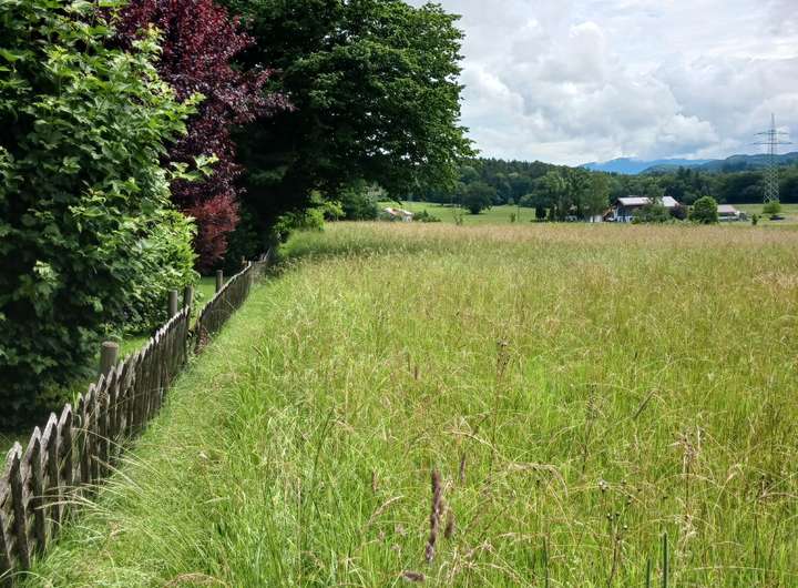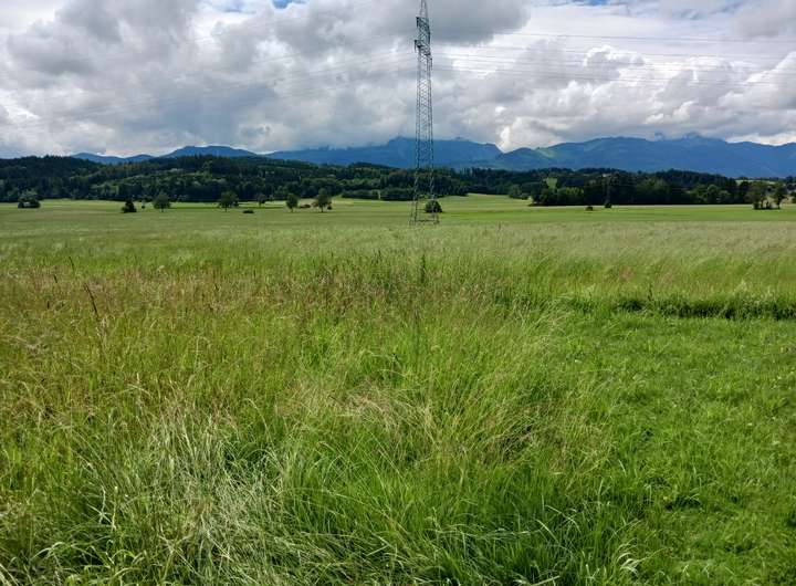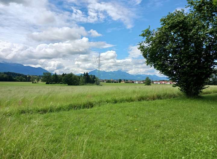Am Ortsrand gelegenes Grundstück mit freiem Blick auf die Chiemgauer Berge. Ganztags sonnig, mit leichter Hanglage.