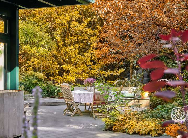 - Sonnensegel über der Mittelterrasse im Erdgeschoss