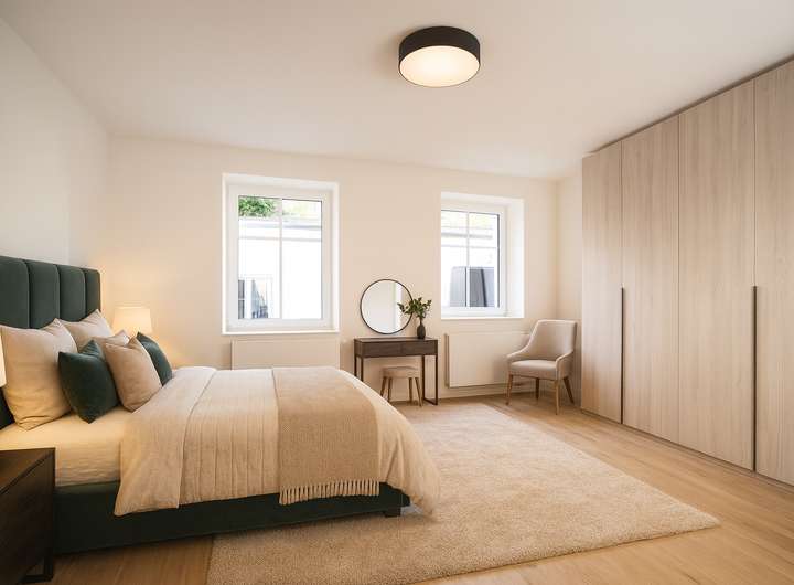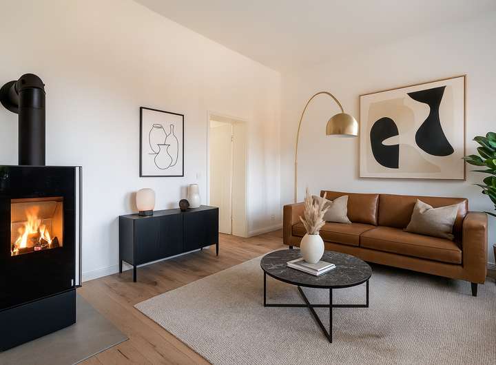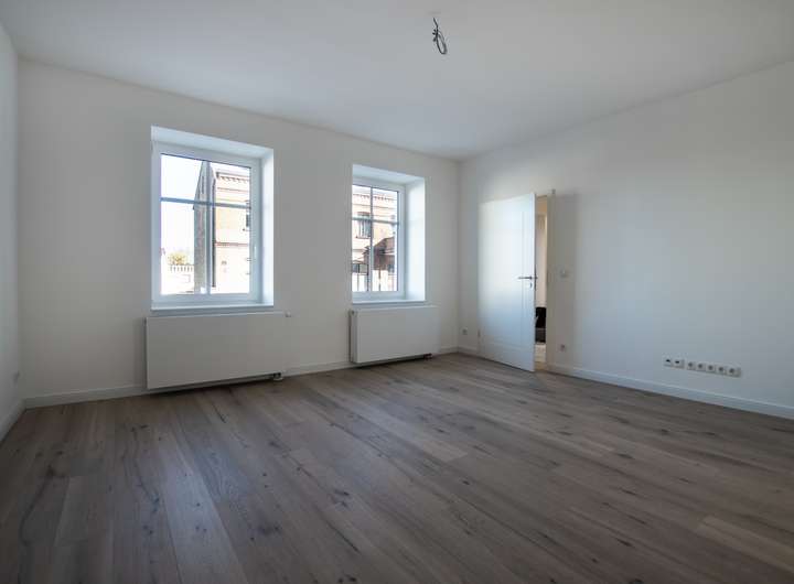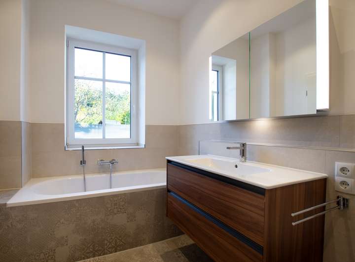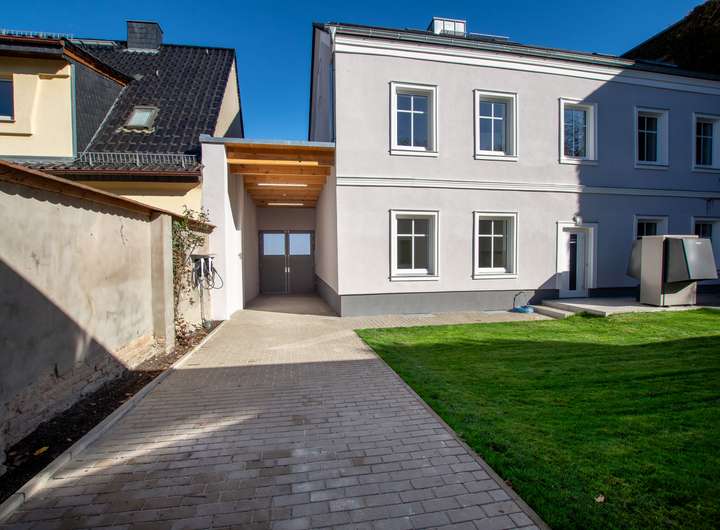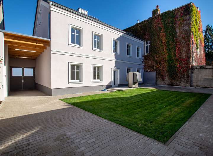 Die Sanierungsarbeiten umfassten das komplette Haus & Grundstück: Fassade, Dach, Fenster, Türen, Innenausbau, Haustechnik sowie Remise und Hof. Auch die Heizung-, Sanitär-, Elektro-Installationen wurden im gesamten Haus neu verlegt.