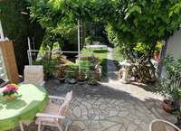 Auf einem ca. 209 m² großen Grundstück lädt der verwunschene Garten mit Terrasse in Südwestlage zum Verweilen ein.