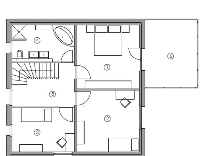 - Ausgebautes Dachgeschoss (z. B. Büro, Gästezimmer, Atelier)