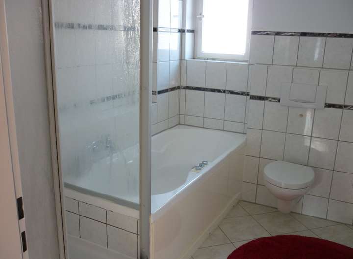 schönes Bad mit Fenstern, Badewanne und seperater Dusche weiteres Gäste WC