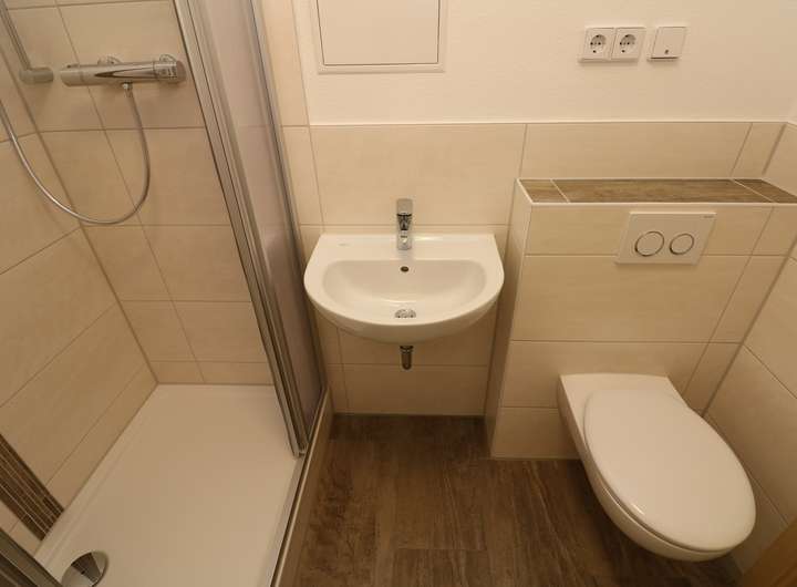 - modern gefliestes Bad mit Dusche