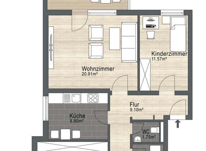 Ein besonderes Highlight dieser Wohnung ist der hochwertige Parkettboden, der im Wohn- und Kinderzimmer für eine warme und elegante Atmosphäre sorgt. Zusätzlich verfügt die Wohnung über einen Keller, der zusätzlichen Stauraum bietet, sowie das Recht auf Mitbenutzung des Trockenkellers und des Fahrradkellers.