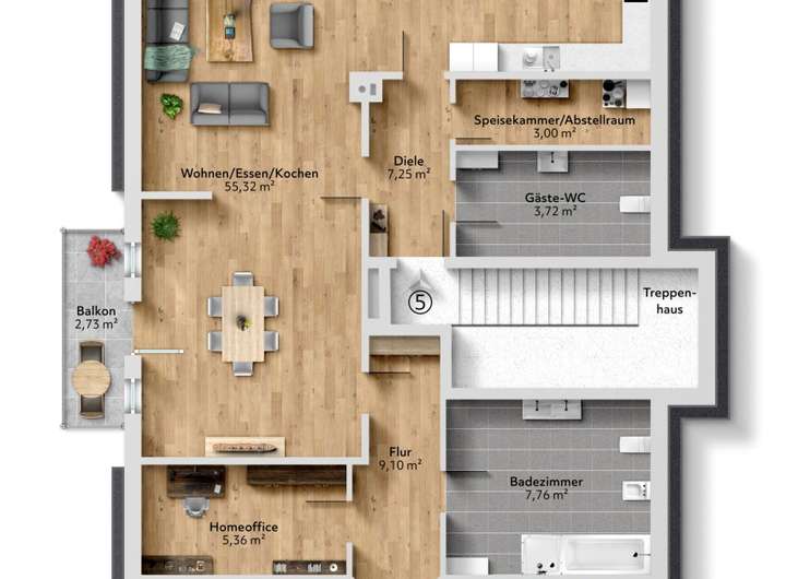 Im Dachgeschoss dieses modernen Fünf-Parteienhauses in Obertaufkirchen erwartet Sie eine außergewöhnlich großzügig geschnittene Dreizimmerwohnung mit besonderem Charme. Herzstück ist der offene Wohn-, Ess- und Kochbereich, der mit seiner beeindruckenden Größe von über 55 m² ein echtes Highlight darstellt. Der angrenzende Balkon erweitert den Wohnraum ins Freie und lädt zum Entspannen ein.