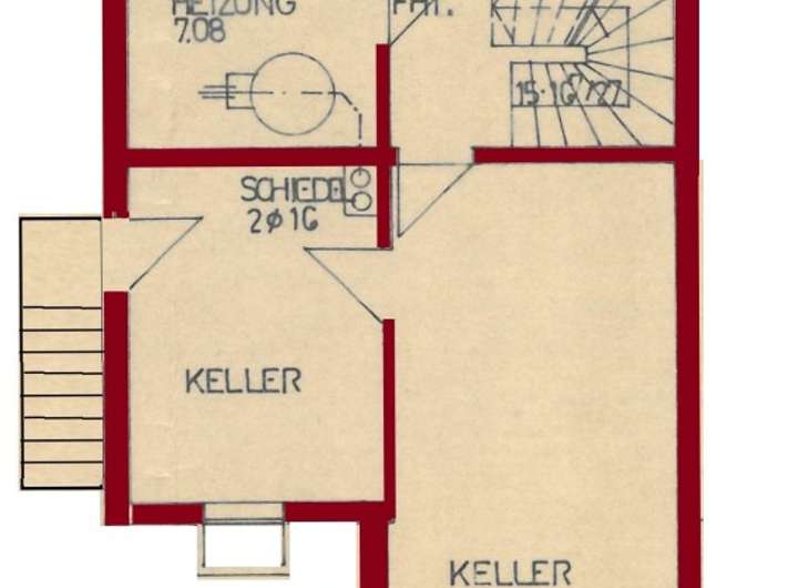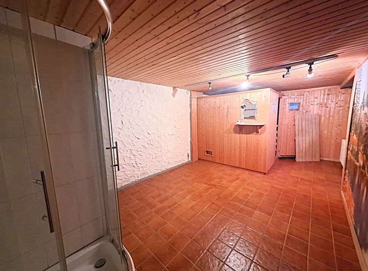 Das Kellergeschoss mit Ausgang in den Garten wurde ein Saunabereich mit Dusche geschaffen. Zudem finden Sie hier den Heiz-, und Waschraum, sowie einen Lagerkeller.