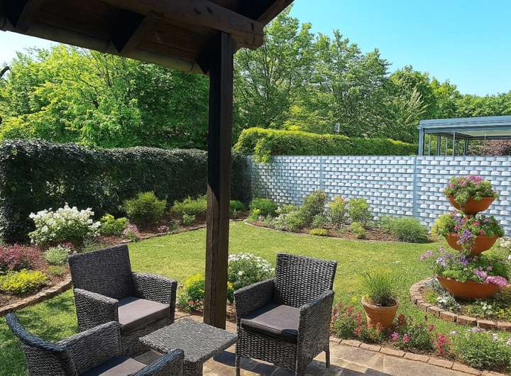 Ein Mähroboter ist vorhanden und erspart Ihnen viel Zeit bei der Rasenpflege.