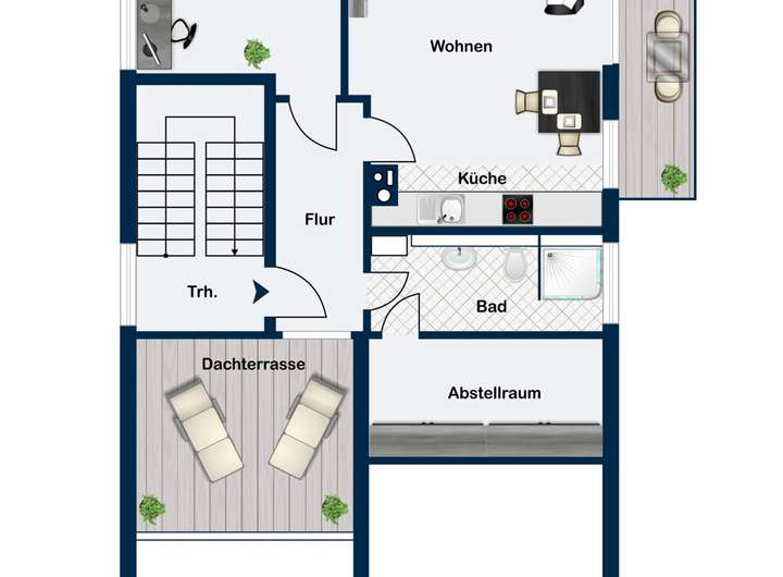 - Dachterrasse im Dachgeschoss mit SW-Aussicht und Balkon Ost