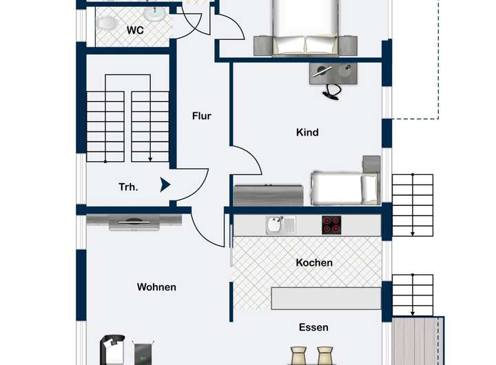 - 91,55 m² im Obergeschoss mit direktem Gartenzugang und