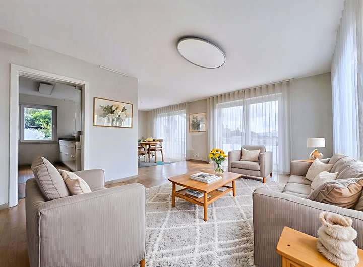 Hervorzuheben ist die energetische Ausrichtung mit Eigenstrom über Photovoltaik für Heizung und Warmwasser. Die Überschusseinspeisung erfolgt ins Stromnetz. Die Fußbodenheizung sorgt für eine wohlige Wärme in den Wohnräumen.