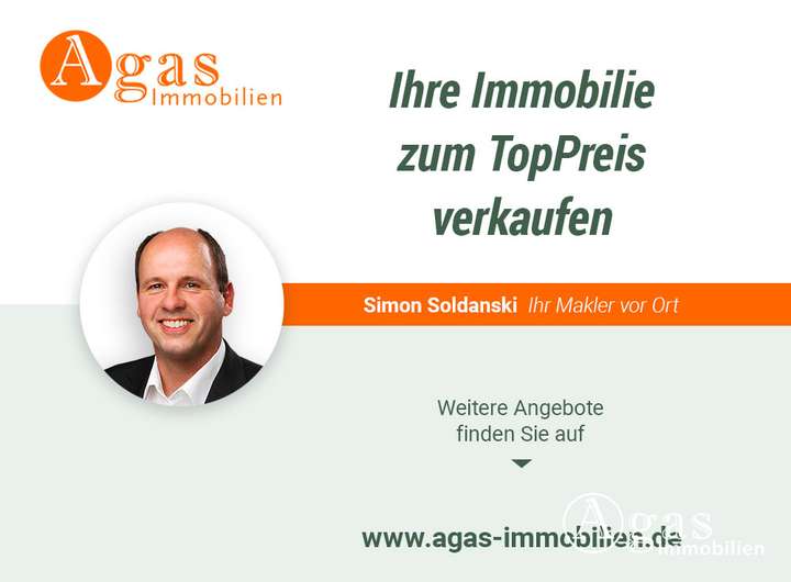 Die Angaben in diesem Angebot beruhen auf Angaben des Auftraggebers oder Dritten. Agas-Immobilien übernimmt keine Haftung und keine Gewähr für die Richtigkeit, Vollständigkeit und Aktualität dieser Angaben. Insbesondere die Angaben zur Wohnfläche, zur Nutzfläche und zur Aufteilung der Wohn-/Nutzfläche sind von uns nicht durch ein eigenes Aufmaß oder eine eigene Wohnflächenberechnung kontrolliert worden. Die Angaben zum Baujahr sind nicht durch eine Einsicht in die Bauakte überprüft worden. Irrtum, Auslassungen und Zwischenverwertung vorbehalten.