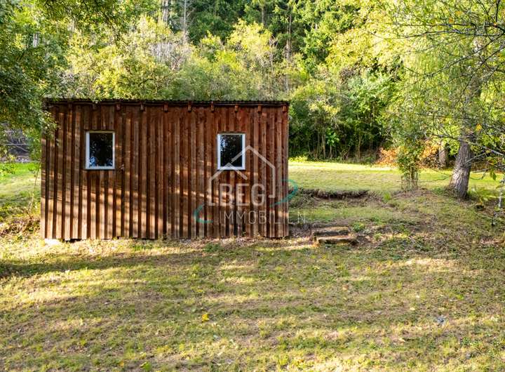 Die Hütte wurde mit viel Liebe zum Detail errichtet, vollständig gedämmt und rundum solide ausgestattet. Dank elektrischer Verkabelung, zweifachverglaster Kunststofffenster mit Rollläden, Vinylboden und Holzofen bietet sie ganzjährig Komfort und Gemütlichkeit – perfekt für Wochenenden, kleine Feiern oder einfach zum Abschalten.