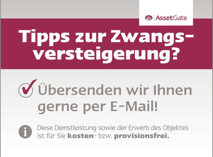 Es handelt sich bei diesem Objekt um einen Erwerb im Zwangsversteigerungsverfahren. Der angegebene Preis ist als Richtgröße zu verstehen, der tatsächliche Zuschlagsbetrag kann darüber liegen. Alle Fragen zum Versteigerungsverfahren werden von uns beantwortet. Dieses Angebot ist für Sie provisionsfrei!