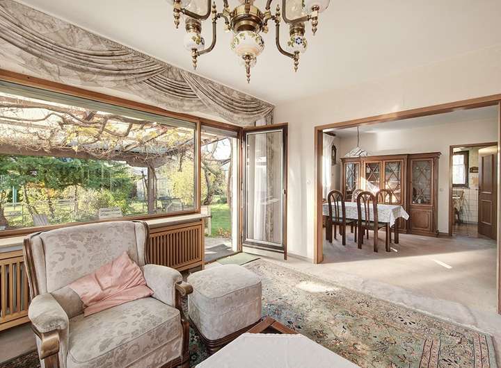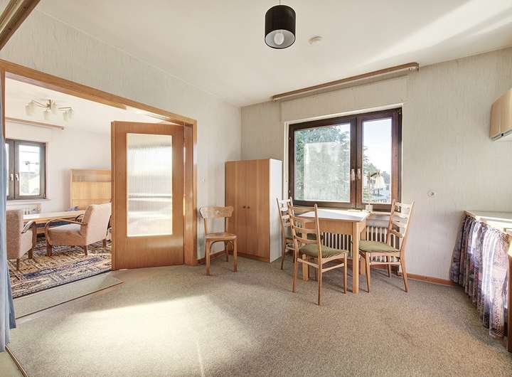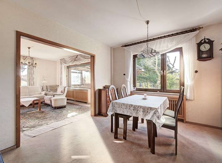 Das Einfamilienhaus präsentiert sich mit einer klassischen und gelungenen Raumaufteilung mit zwei Vollgeschossen, einer Vollunterkellerung und einem großzügigen Dachboden.