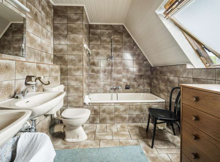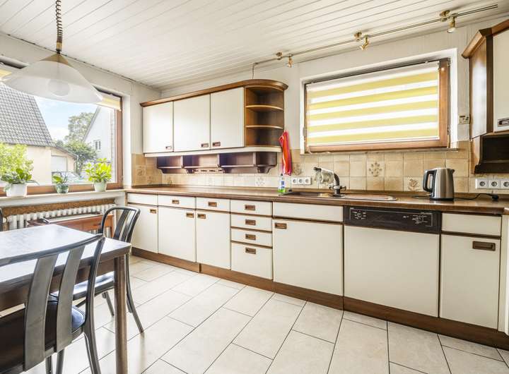 Im Haupthaus finden Sie im Erdgeschoss ein Tageslichtbad mit Wanne sowie ein Duschbad (ebenfalls Tageslicht) sowie die helle und freundliche Küche und den Wohn-und Essbereich.