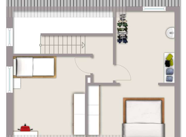 Im Obergeschoss befinden sich zwei Schlafräume.