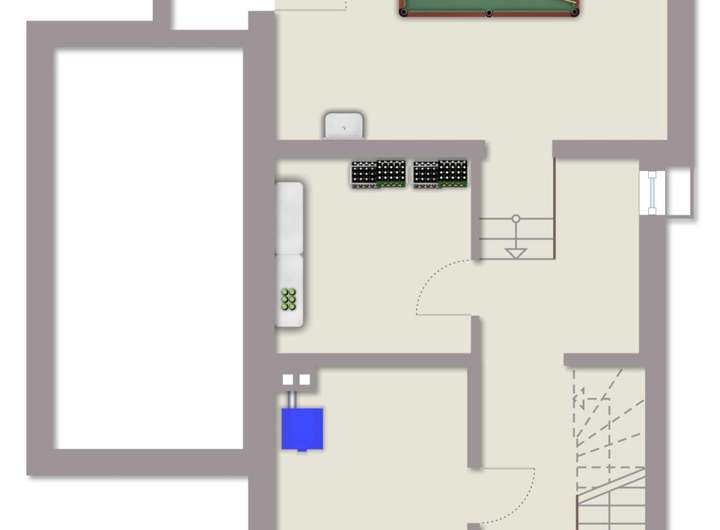 Dieser Bereich ist unterkellert - hier finden Sie zwei Kellerräume vor, welche Sie über eine offene Holztreppe erreichen.
