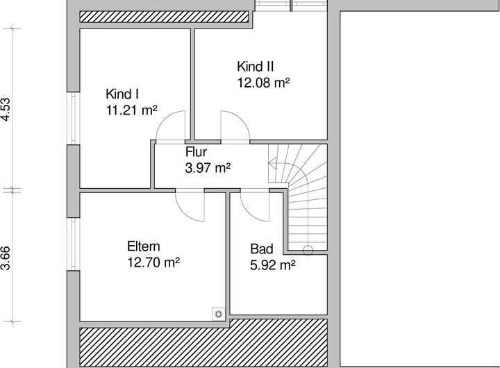 Hier befinden sich drei Schlafzimmer, Badezimmer und Flur.