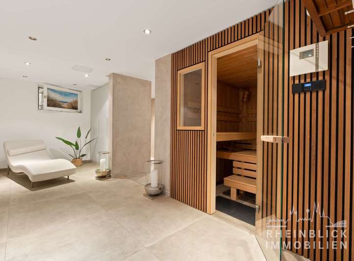 Die große Terrasse mit direktem Zugang zum prachtvollen Garten ist der perfekte Ort, um den Tag ausklingen zu lassen oder Gäste in einer exklusiven Atmosphäre unter Palmen zu empfangen. Die aufwendig gestaltete Gartenanlage bietet eine Vielzahl von Rückzugsorten, während der riesige Pool und die Wellness-Oase im Keller für ultimativen Luxus und Entspannung sorgen. Die Sauna rundet das Wohlfühl-Erlebnis ab und lässt keine Wünsche offen.
