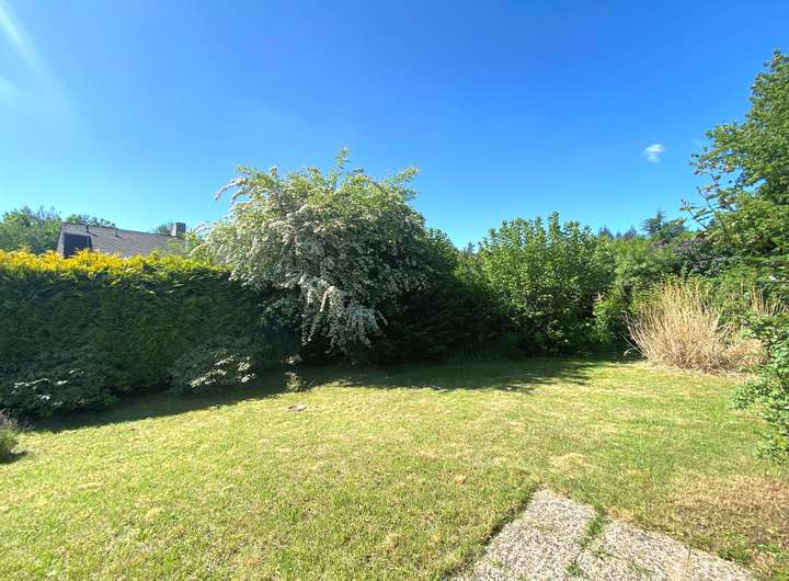 Dieses freistehende Einfamilienhaus besticht durch seine helle, freundliche Atmosphäre und den liebevoll angelegten Garten mit Rasenfläche, Sträuchern, Bäumen und Ziergräsern. Das Grundstück liegt in angenehmer Hanglage. Über einige Außenstufen erreichen Sie den Eingang des gepflegten Hauses.