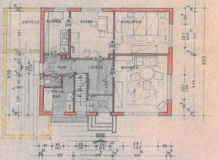 Das in Massivbauweise erstellte Haus befindet sich auf einem ca. 690 m² großen Grundstück in Aurich-Sandhorst. Die ca. 134 m² Wohnfläche sind durchdacht aufgeteilt und bieten sowohl die Möglichkeit der ebenerdigen Nutzung, als auch der Aufteilung in 2 Wohneinheiten, wobei das EG eine Wohnfläche von ca. 80 m² und das OG eine Wohnfläche von etwa 54 m² aufweist. Im Erdgeschoss ist eine Einbauküche vorhanden. Beheizt wird die Immobilie über eine Gas-Therme mit Warmwassererzeugung, die sich in einem der zwei Kellerräume befindet. Das Dach des Hauses ist erneuert und wärmegedämmt, nachträglich wurden Kunststofffenster mit Außen-Jalousien eingebaut. Es sind zwei Garagen vorhanden und ein angrenzender Geräteraum. Vor den Garagen sind Stellflächen für 3 Kfz vorhanden. In den Dachschrägen befinden sich abschließbare Stauräume. Auf den mit Holzdielen belegte Dachboden steht eine große Nutzfläche zur vielseitigen Nutzung zur Verfügung. Der Garten ist eingewachsen und pflegeleicht angelegt.