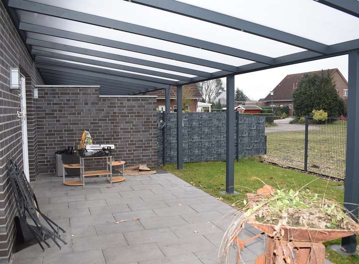 Das zugehörige Carport sorgt zudem für einen trockenen Unterstand Ihres Fahrzeuges.