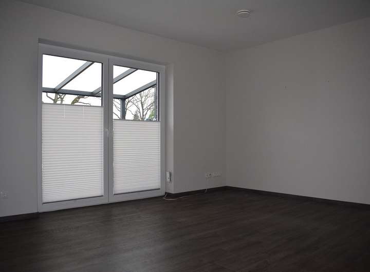 Die Wohnfläche von ca. 120 m² erstreckt sich über zwei Etagen. Das Erdgeschoss hält für Sie einen geräumigen, lichtdurchfluteten Wohnbereich mit offener Küche und mit Zugang zur überdachten Terrasse und einem kleinen gepflegten Gartenbereich bereit. Zusätzlich steht Ihnen ein Schlafzimmer/Büro, ein HWR, ein kleiner Abstellraum und ein Bad ausgestattet mit einer ebenerdigen (rollstuhlgerecht) Dusche zur Verfügung.
