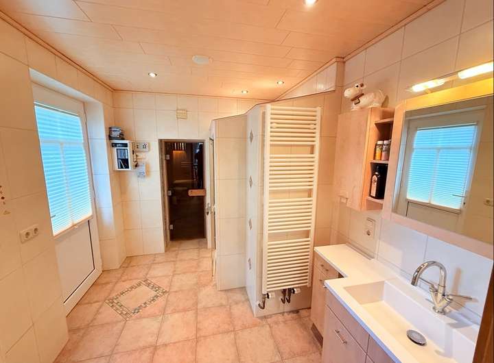 Das Haus wird über Heizkörper beheizt und in folgenden Räumen über eine Fußbodenerwärmung: Sauna, Wohn-/Esszimmer, Küche und Bad. Die Gasheizung (Brennwerttherme) von Vaillant stammt aus dem Jahr 2006.
