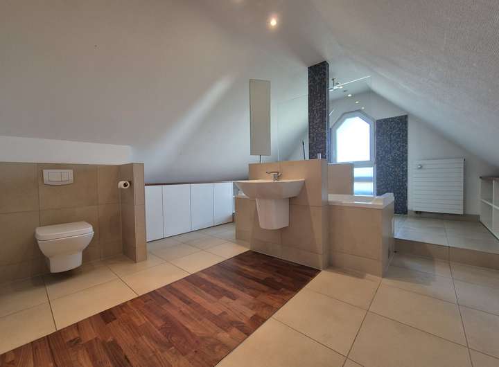 Das hochwertige Haus beeindruckt mit insgesamt neun Zimmern, darunter sechs gemütliche Schlafzimmer, die Ihnen und Ihrer Familie Rückzugsorte voller Ruhe und Entspannung bieten. Zwei großzügige Wohn-/Esszimmer in offenem Wohnkonzept laden für gemeinsame Stunden mit Familie und Freunden ein. Genießen Sie kalte Tage an einem der stilvollen Kaminöfen. Zwei luxuriöse Badezummer und ein funktionales Bad sowie ein Gäste-WC ergänzen die hervorragenden Annehmlichkeiten dieses Hauses. Im Kellerbereich befindet sich ein weiteres WC sowie ein Raum, welcher sich optimal für einen Saunabereich eignet.