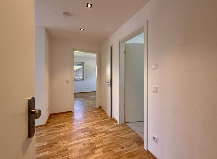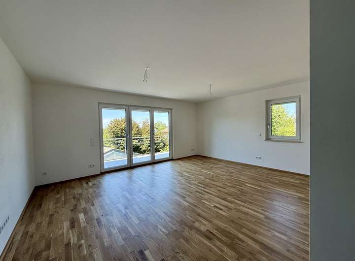 Wir bieten hier eine gemütliche und hochwertige Dachgeschosswohnung in einem neuen Mehrfamilienhaus an. Das Bauprojekt entsteht in einem gemütlichen Wohnort des Traunsteiner Landkreises zwischen dem Waginger See und dem Chiemsee und bietet den perfekten Ort fernab von allem Großstadt- und Touristentrubel. Modernste Haustechnik und bewährte Ziegelbauweise sorgen für beste Wohnqualität. Diese Haustechnik verbunden mit nachhaltigen Isolierungsmaßnahmen steht für eine fortschrittliche Energieeffizienzklasse von A+. Beheizt wird die Wohnung mittels einer zentralen Luft-Wärme-Pumpe. Die Wohnung ist ideal in Richtung Süd-West ausgerichtet. Neben zwei Schlafzimmern verfügt die Wohnung über ein großes Badezimmer mit ebenerdiger Dusche. Das Bad ist mit großflächigen Fliese geschmackvoll und zeitlos ausgestattet. Der Anschluss für eine Waschmaschine und Trockner finden Sie hier ebenfalls vor. Der separate Abstellraum ermöglicht es Haushaltsgeräte geschickt zu verstauen. Echtholzparkettböden verschaffen eine gemütliche und warme Wohnatmosphäre. Das fast 20 m² große Wohnzimmer schaff Platz für eine offene Einbauküche und bietet den Zugang auf den über 10 m² großen Süd-Balkon. Dieser ist ein wunderbarer Ort, um den ganzen Tag Sonne zu tanken und im Freien zu speisen. Ein Carport mit einzelnen absperrbaren Steckdosen zum Laden eines E-Fahrzeugs befinden sich auf der Seite des Hauseingangs.