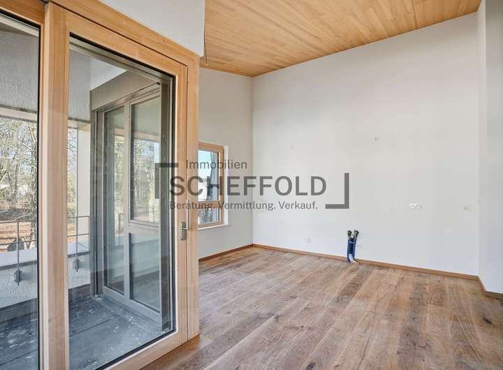 Jede Wohnung empfängt Sie mit einem Bodenbelag Ihrer Wahl, beispielsweise edlem Echtholzparkett, einer eleganten Decke aus Weißtanne und hochwertigen Holz-Alu-Fenstern, die nicht nur für eine langlebige Optik sorgen, sondern auch das Raumklima positiv beeinflussen.