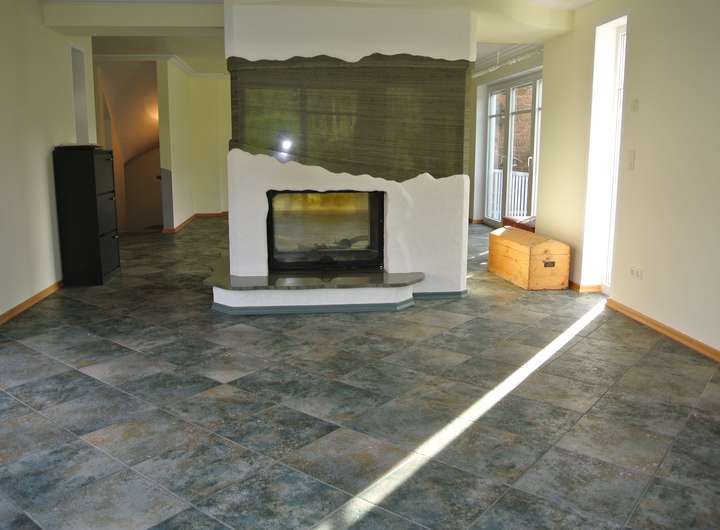 Die Wohn- und Nutzfläche befindet sich auf drei Ebenen. Im gesamten Haus ist eine Fußbodenheizung. Die Böden sind teilweise in Fliesen und teilweise in Holz/ Laminat.