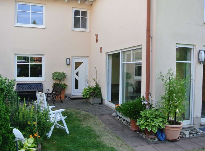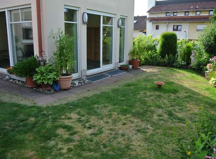 Das Haus ist von zwei Seiten von einem gepflegten und eingewachsenen Garten umgeben.
